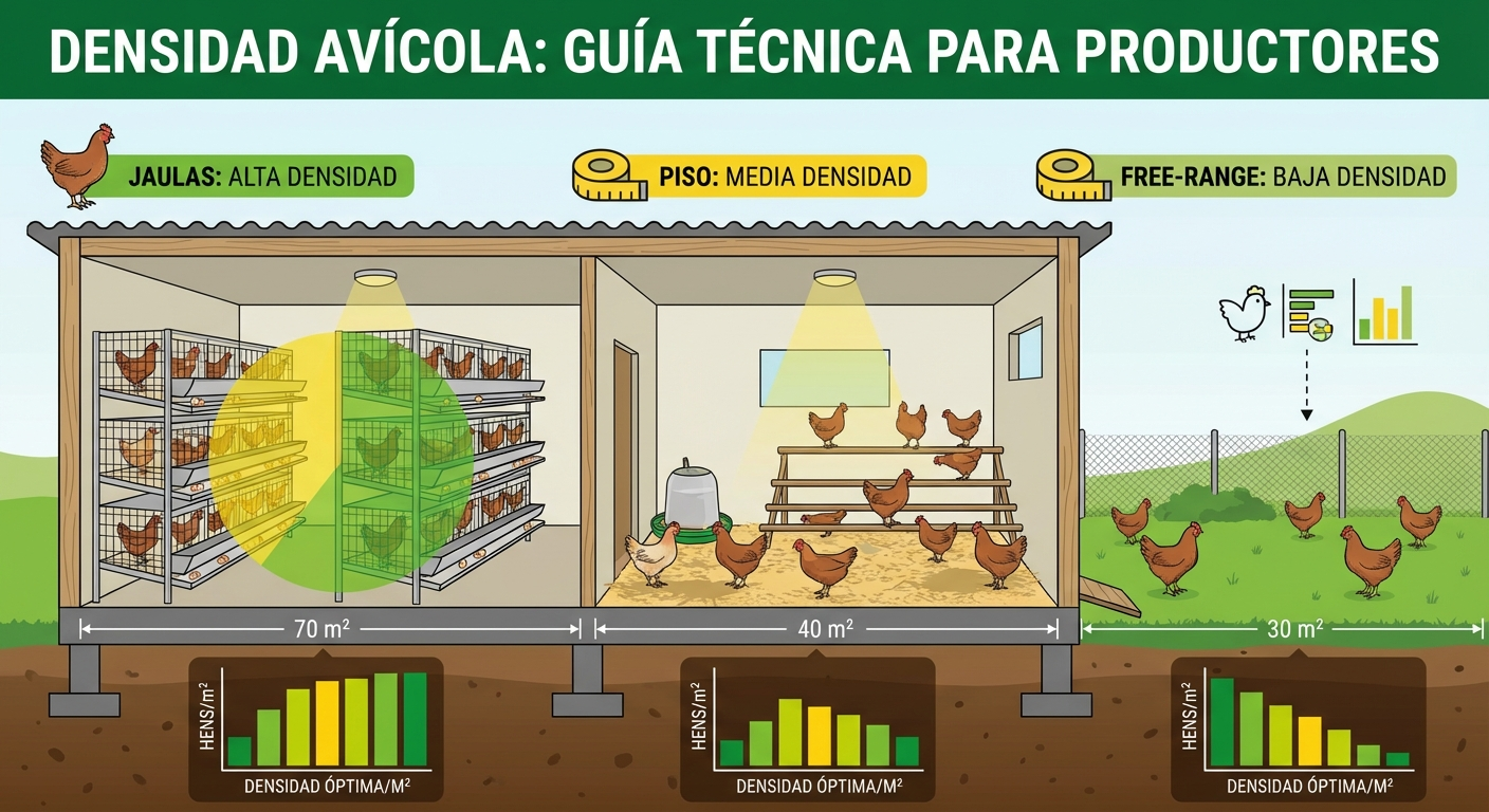 Descubre la densidad óptima para gallinas según sistema de alojamiento, raza y normativa vigente. Cálculos prácticos, impactos en productividad y bienestar animal.